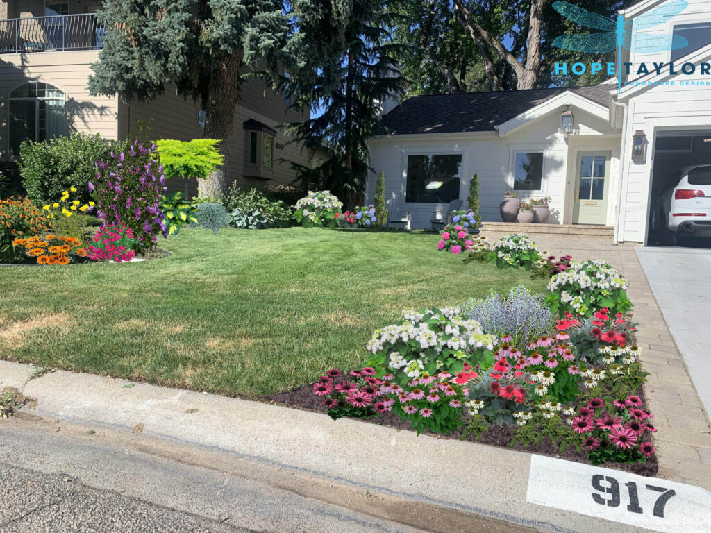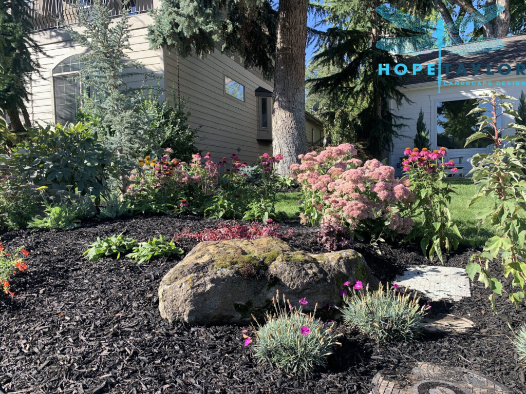 Cedar Blue Atlas Weeping (Cedrus atlantica ‘Glauca Pendula’), Redbud Weeping (Cercis canadensis), Cherry Weeping (Prunus pendula), Juniper Blue Chip (Juniperus horizontalis ‘Blue Chip’), Juniper Blue Star (Juniperus squamata ‘Blue Star’), Hydrangea Tree Quick Fire (Hydrangea paniculata ‘Quick Fire’), Hydrangea Big Leaf (Hydrangea macrophylla), Hydrangea Panicle Little Quick Fire (Hydrangea paniculata ‘Little Quick Fire’), Hydrangea Mountain Tuff Stuff (Hydrangea serrata ‘Tuff Stuff’), Yarrow Moonshine (Achillea ‘Moonshine’), Yarrow Violet (Achillea ‘Violet’), Dianthus Firewitch (Dianthus ‘Firewitch’), Coneflower Magnus (Echinacea ‘Magnus’), Coneflower Pow Wow (Echinacea ‘Pow Wow’), Coneflower Sombrero Hot Coral (Echinacea ‘Sombrero Hot Coral’), Coneflower Salsa Red (Echinacea ‘Salsa Red’), Hibiscus Angel Eyes (Hibiscus ‘Angel Eyes’), Hosta Guacamole (Hosta ‘Guacamole’), Hosta Shadowlands (Hosta ‘Shadowlands’), Pulmonaria (Pulmonaria spp.), Black Eyed Susan Goldsturm (Rudbeckia fulgida ‘Goldsturm’), Black Eyed Susan Little Gold Star (Rudbeckia ‘Little Goldstar’), Salvia May Night (Salvia ‘May Night’), Sedum Firecracker (Sedum ‘Firecracker’)