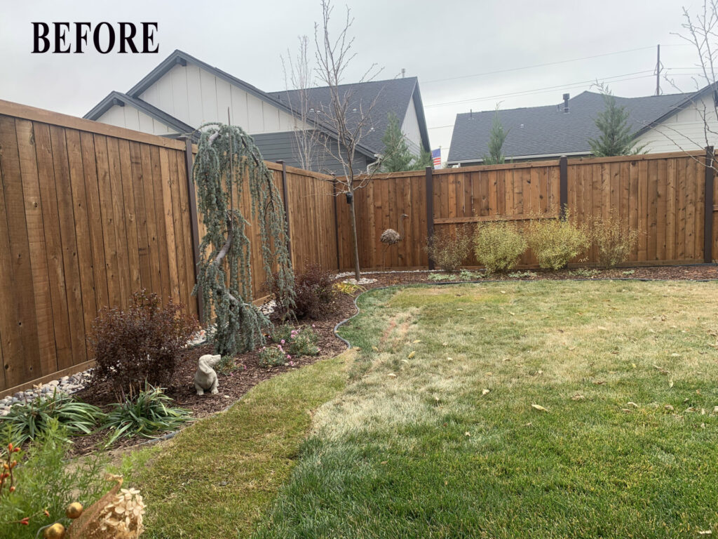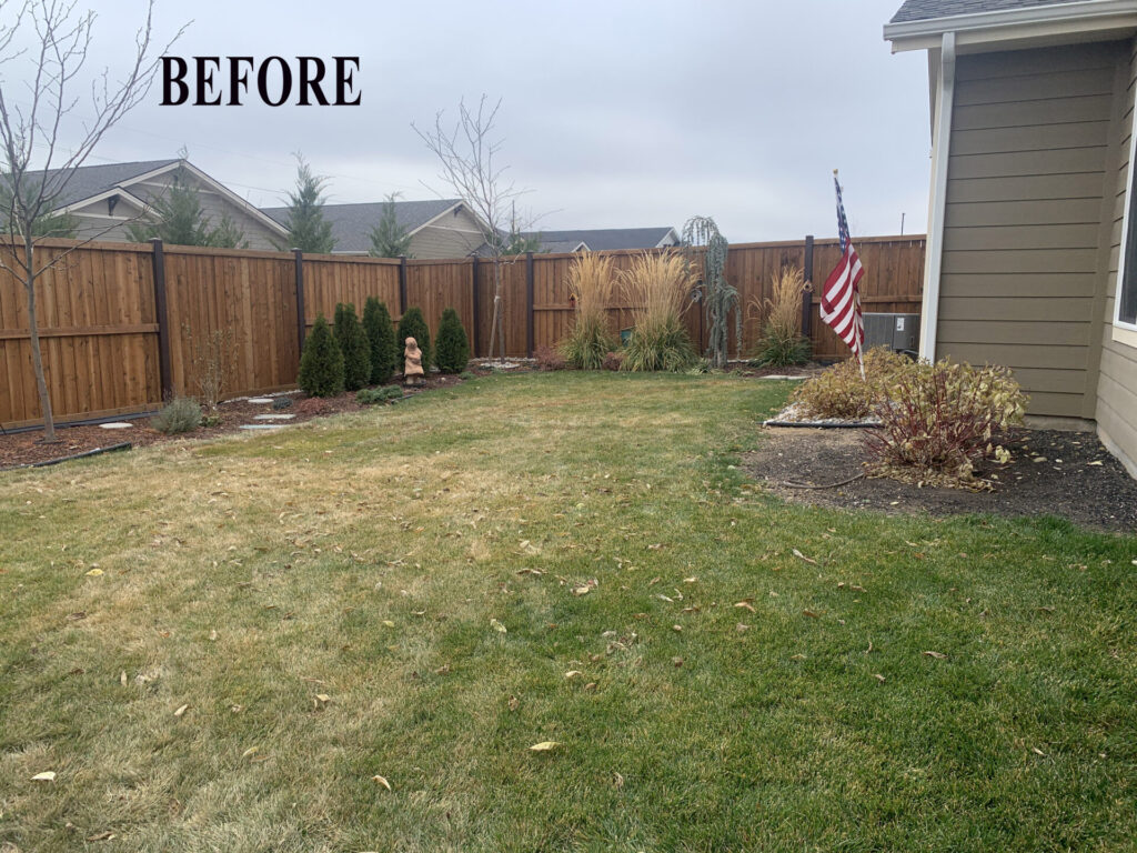 The first step was removing the plastic edging that defined the previous beds—it had the opposite effect of what we were going for. In its place, we’ve redefined the space by pulling large evergreens toward the foreground. By strategically reducing the perceived size of the yard, we’re making room for layered trees and shrubs that will build vertical interest and lush enclosure.